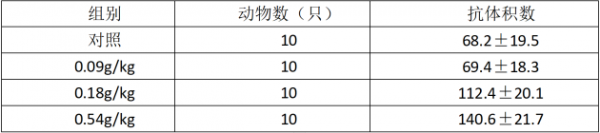 2003年,海南海藥股份有限公司委托上海市預防醫(yī)學研究院,通過動物試驗,對紅寶太和膠囊增強免疫力的功能進行檢驗。實驗結果表明:紅寶牌太和膠囊對動物具有增強免疫力功能。以血清溶血素試驗為例,在動物連續(xù)給樣30 天后,血清溶血素抗體積數試驗數據如下: