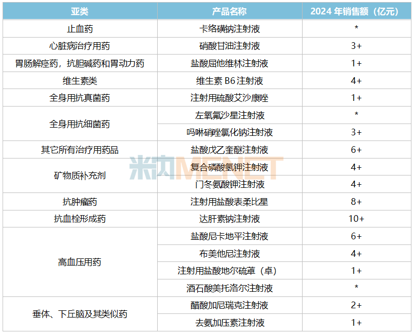 第九批(2023年11月)中標(biāo)的鹽酸烏拉地爾注射液、氟維司群注射液、地塞米松磷酸鈉注射液,3個(gè)產(chǎn)品2023年銷售額也在10億元水平,2024年均降至8億元左右。