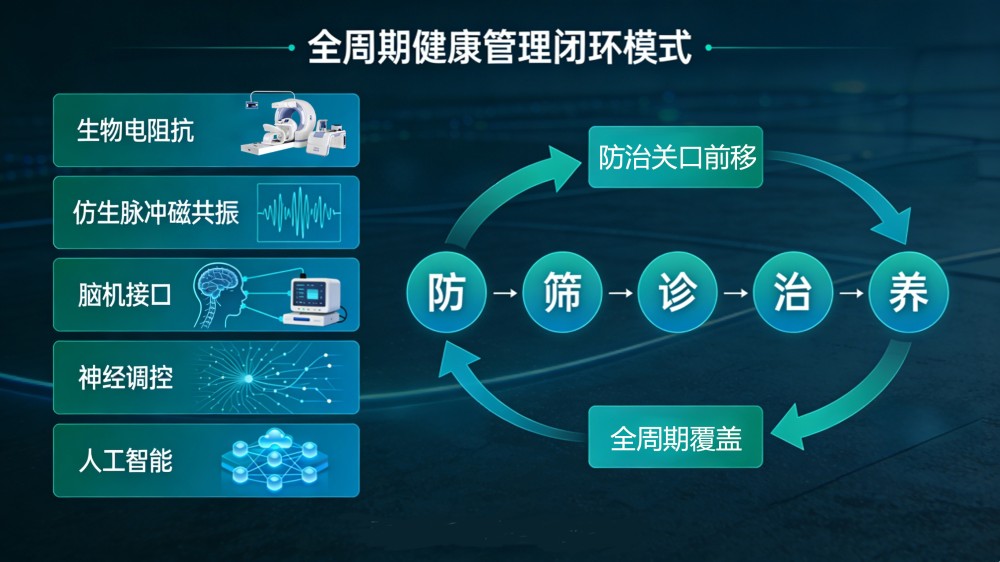 面對這一嚴(yán)峻形勢,惠斯安普依托自身在生物醫(yī)學(xué)領(lǐng)域的技術(shù)積淀,以生物電阻抗、仿生脈沖磁共振、腦機(jī)接口、神經(jīng)調(diào)控、人工智能五大核心技術(shù)為支撐,創(chuàng)新性地構(gòu)建起覆蓋“防、篩、診、治、養(yǎng)”全環(huán)節(jié)的閉環(huán)模式,將防治關(guān)口前移,實(shí)現(xiàn)從早期預(yù)防到全程康養(yǎng)的全周期覆蓋,精準(zhǔn)破解傳統(tǒng)防治模式碎片化、精準(zhǔn)度低、覆蓋范圍有限的痛點(diǎn)。
