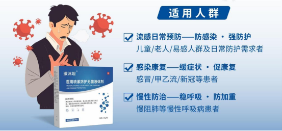 防治一體,適應(yīng)癥明確,滿足多元化需求——通過直接對(duì)上呼吸道進(jìn)行噴入,保持上呼吸道濕潤(rùn),精準(zhǔn)滯留于鼻咽部黏膜,從而阻止病原微生物在呼吸道內(nèi)生長(zhǎng)繁殖。同時(shí),有效舒緩流感引發(fā)的上呼吸道系統(tǒng)鼻塞、流涕、咳喘、呼吸受阻等癥狀,減輕患者痛苦。