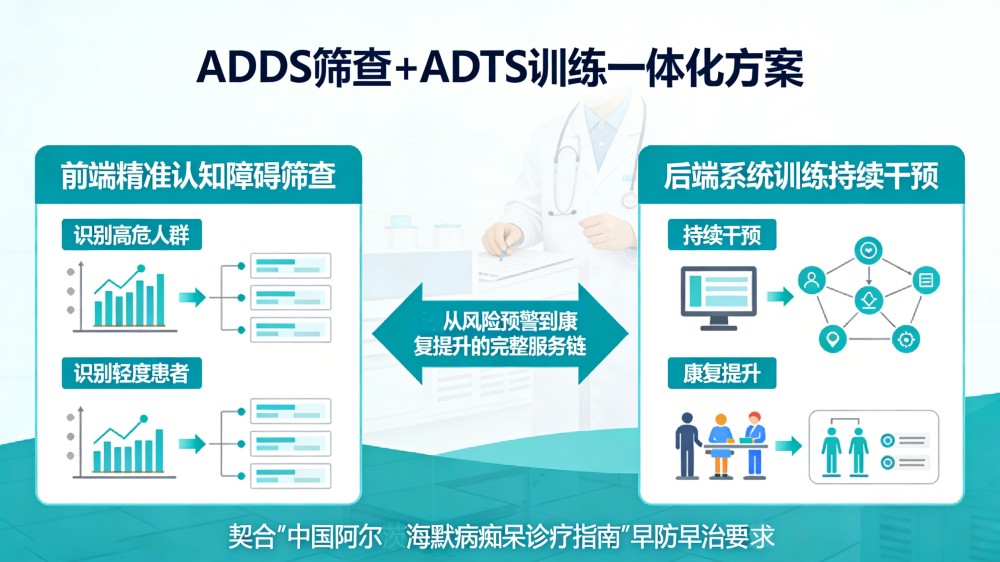 隨著我國(guó)老齡化進(jìn)程加快,認(rèn)知障礙已成為影響老年群體健康與家庭幸福的重要公共衛(wèi)生問(wèn)題。輕度認(rèn)知障礙作為介于正常衰老與癡呆之間的關(guān)鍵階段,是阻斷病情進(jìn)展、守護(hù)記憶能力的黃金窗口期。以ADDS認(rèn)知功能障礙篩查設(shè)備為前端預(yù)警、ADTS記憶力障礙訓(xùn)練系統(tǒng)為后端干預(yù),構(gòu)建“早篩—早診—早干預(yù)”全流程閉環(huán),正為輕度認(rèn)知障礙患者筑起堅(jiān)實(shí)的“防癡呆” 防線。
