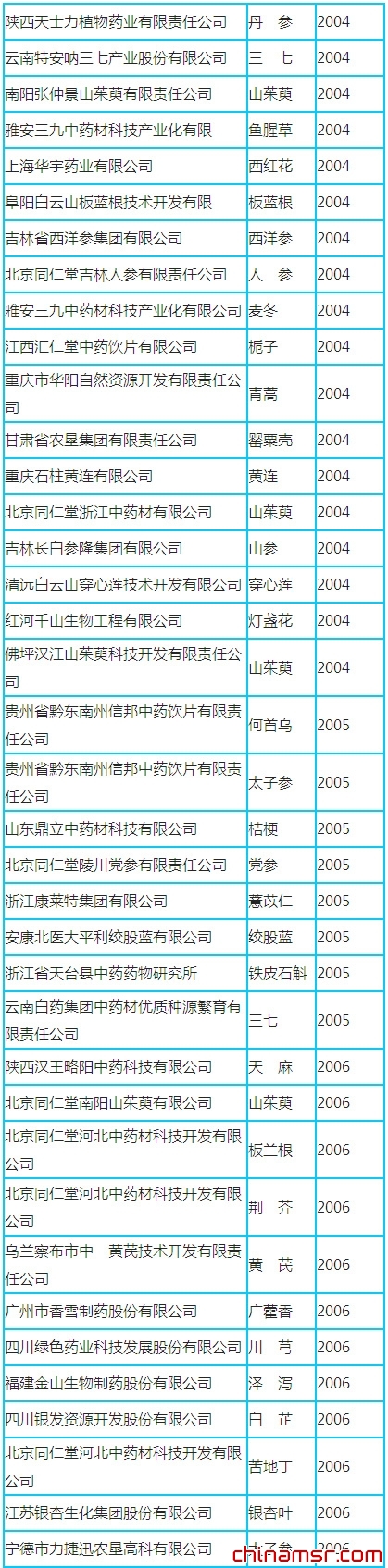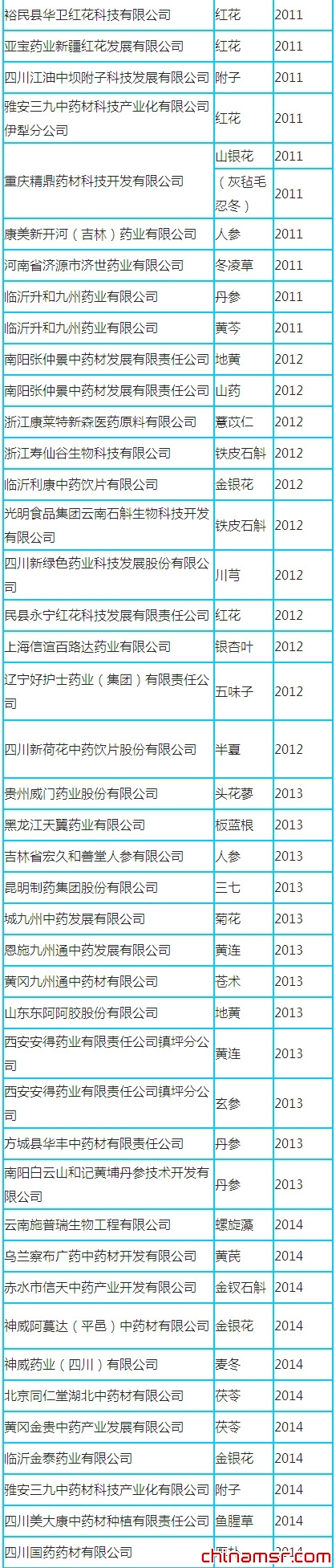 2004-2014獲得GAP認(rèn)證的企業(yè)品種名單一覽表